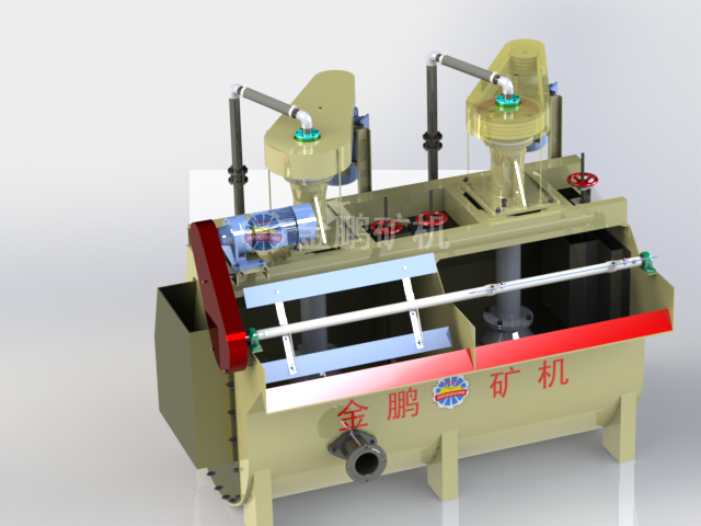 KYF型無自吸礦漿能力,功率較低;而XCF型具有自吸礦漿能力,可水平配置,不需要泡沫泵,不同的是在葉輪上方特別設(shè)定有一個定子,以形成一個特別的負(fù)壓區(qū),但功耗較KYF略高一些,因而一般都將XCF型和KYF型配置成機組,XCF型為吸入槽,KYF型為直流槽,聯(lián)合機組可水平配置,不需泡沫泵。