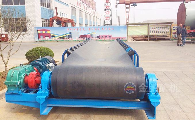 物料通過給礦漏斗給到皮帶給礦機(jī)帶面上,隨著交流調(diào)速電機(jī)的轉(zhuǎn)動(dòng),膠帶緩慢向前移動(dòng),帶面上的物料經(jīng)首輪給入下道工序,實(shí)現(xiàn)連續(xù)給料。