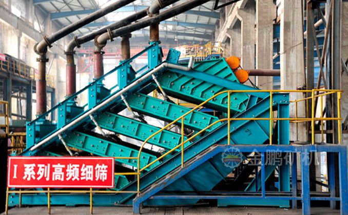 高頻振動細篩主要有兩種:不銹鋼編織篩網(wǎng)的和尼龍篩箅的。篩面共分三段,可同時給礦進行工作。為使各段篩子的礦漿量、質(zhì)量分數(shù)和粒度基本相近,安裝了礦漿分配器,由分配器經(jīng)管道流下的礦漿經(jīng)勻分板和多孔橡膠板均勻給到篩面上。