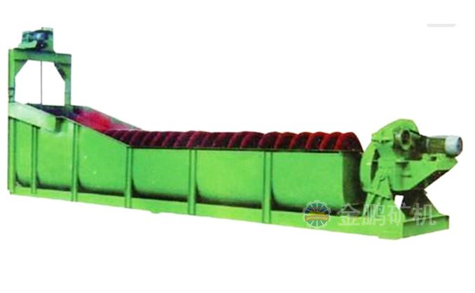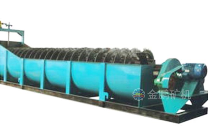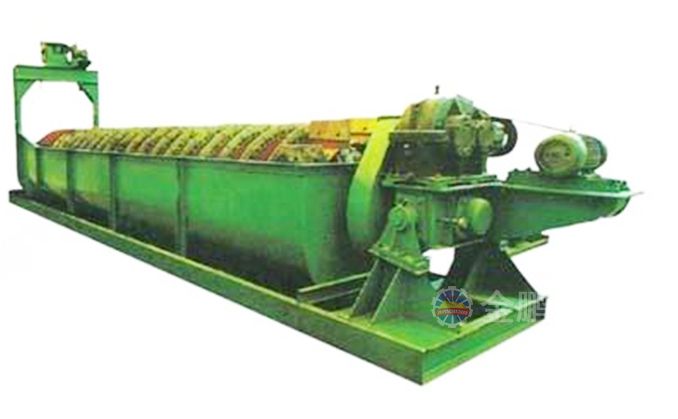 沉沒式螺旋分級機是借助于固體粒大小不同、比重不同,因而在液體中的沉降速度不同的原理,細(xì)礦粒浮游在水中由溢流堰溢出,粗礦粒沉于槽底,由螺旋推向上部排出,來進(jìn)行機械分級的一種分級設(shè)備。通過螺旋低速轉(zhuǎn)動,對礦漿起攪拌作用使細(xì)顆粒懸浮到上面,流到溢流堰處溢出,粗顆粒沉到槽底,由螺旋輸送到排料口作為返砂排出。