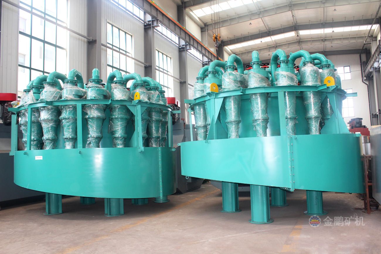 旋流器組能夠滿足大型礦山的礦量需求,我公司可為用戶定制旋流器組,根據(jù)不同的給礦粒度、底流濃度和生產(chǎn)量等對旋流器進(jìn)行選型并確定旋流器數(shù)量,其分級效率比螺旋分級機(jī)高20-30%,可達(dá)到70-85%。