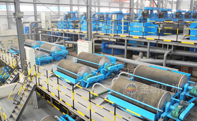3、強(qiáng)磁選:由于磁選的操作簡單、易于控制、適應(yīng)性強(qiáng),可用于各種錳礦石選別,近年來已在錳礦選礦中占主導(dǎo)地位。一般能提高錳品位4-10個百分點(diǎn)。目前,國內(nèi)錳礦應(yīng)用最普遍的是中粒強(qiáng)磁選機(jī)粗粒和細(xì)粒強(qiáng)磁選機(jī)也逐漸得到應(yīng)用。